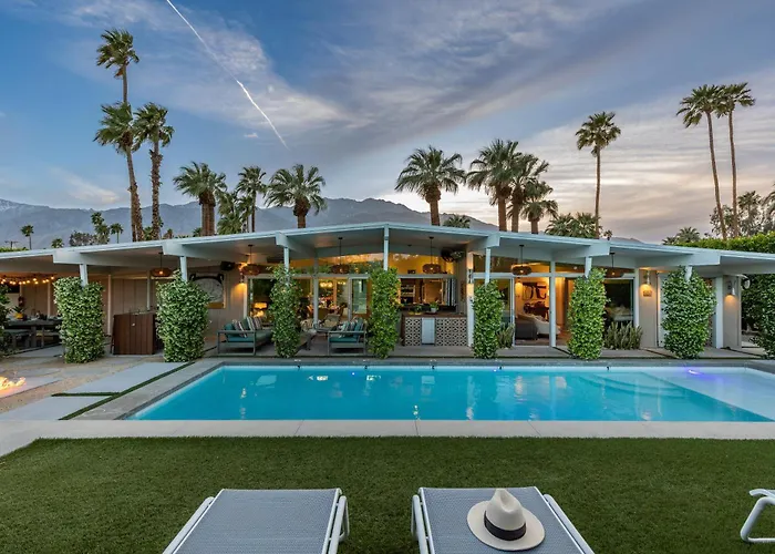 Die Villa bietet einen Essplatz mit Ausstattung zur Kaffee- & Teezubereitung. Zur Selbstverpflegung stehen auch ein Wasserkocher, ein Kühlschrank und ein Herd zur Verfügung. Gerichte der italienischen Küche werden im Restaurant Palermo's New York Pizza serviert, das ca. 15 Fahrminuten von der Familien- Unterkunft entfernt liegt. Von der Hochklasse- Villa sind es 20 Minuten mit dem Auto zum Flughafen Palm Springs. Diese Villa bietet Zugang zu einem Swimmingpool sowie die Möglichkeit, an Fitness-Stunden teilzunehmen.